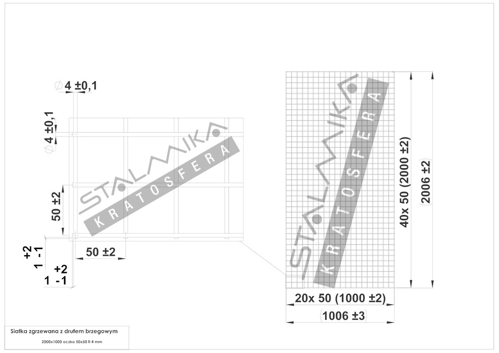 SIATKA ZGRZEWANA [z drutem brzegowym, 2000x1000, 50x50x4, ocynk ogniowy]