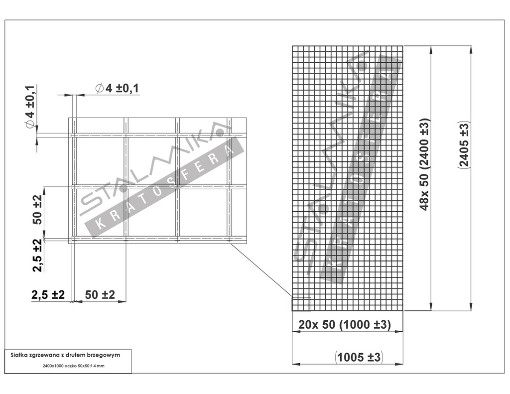 SIATKA ZGRZEWANA [z drutem brzegowym, 2400x1000, 50x50x4, Ocynk Ogniowy]