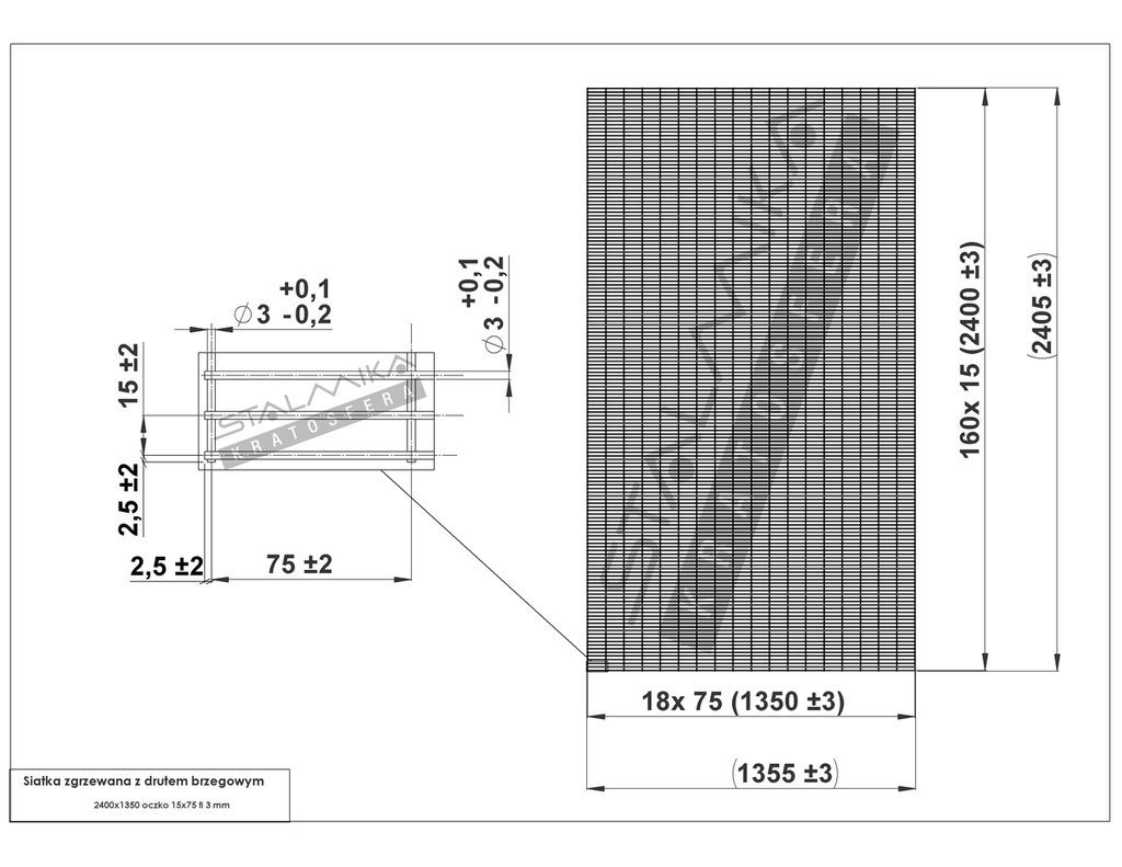 SIATKA ZGRZEWANA [z drutem brzegowym, 2400x1350, 15x75x3, Stalowa]