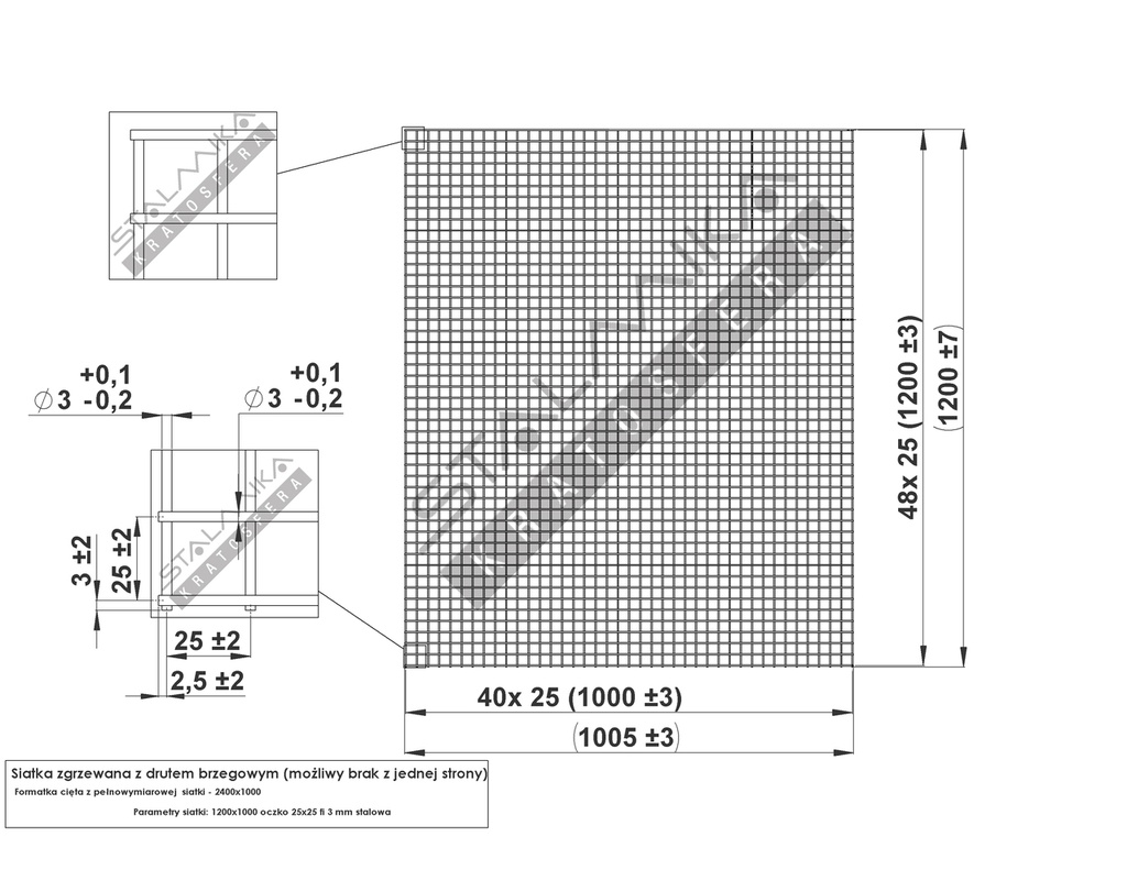 SIATKA ZGRZEWANA [z drutem brzegowym (możliwy brak z jednej strony), 1200x1000, 25x25x3, Stalowa]