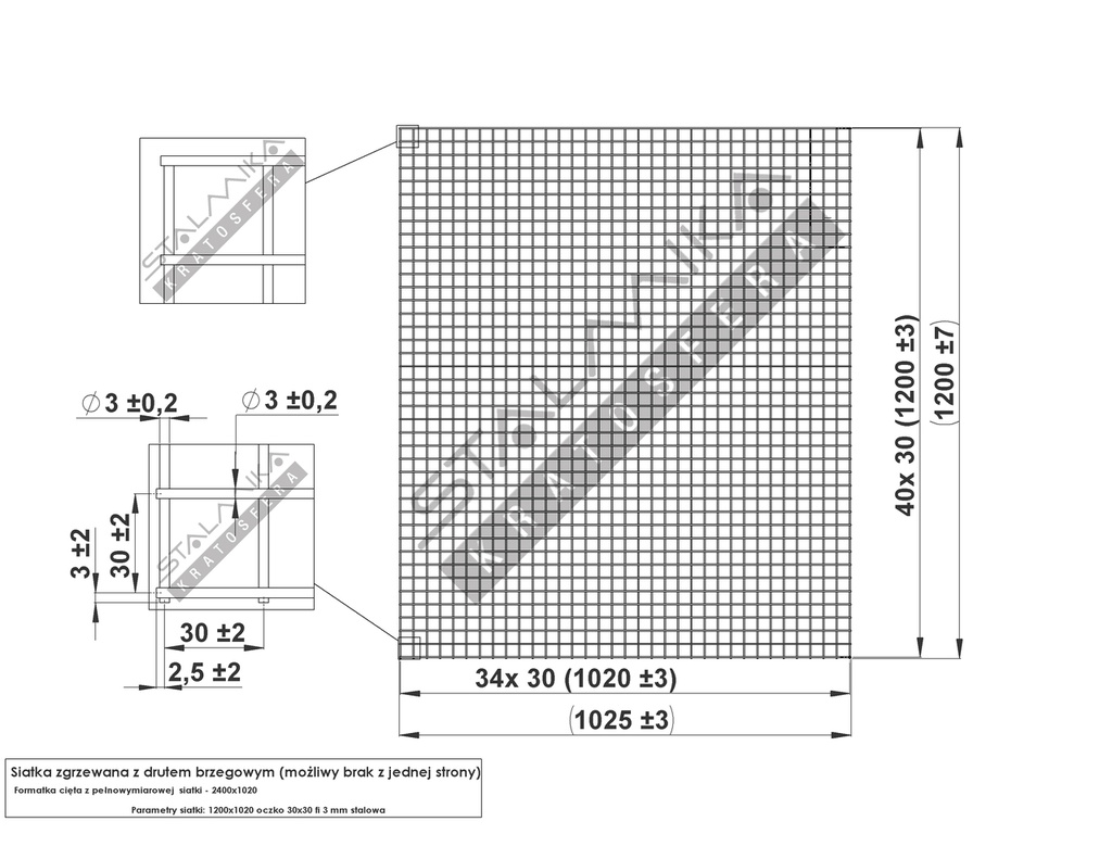 SIATKA ZGRZEWANA [z drutem brzegowym (możliwy brak z jednej strony), 1200x1020, 30x30x3, Stalowa]