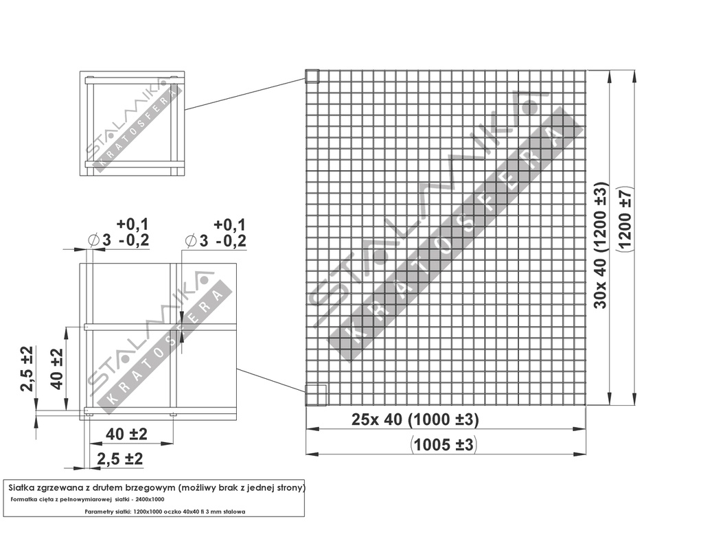 SIATKA ZGRZEWANA [z drutem brzegowym (możliwy brak z jednej strony), 1200x1000, 40x40x3, Stalowa]