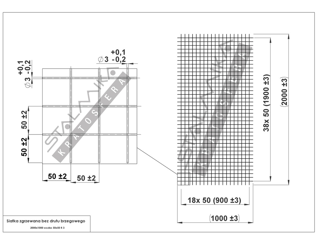 SIATKA ZGRZEWANA [bez drutu brzegowego, 2000x1000, 50x50x3, Stalowa]