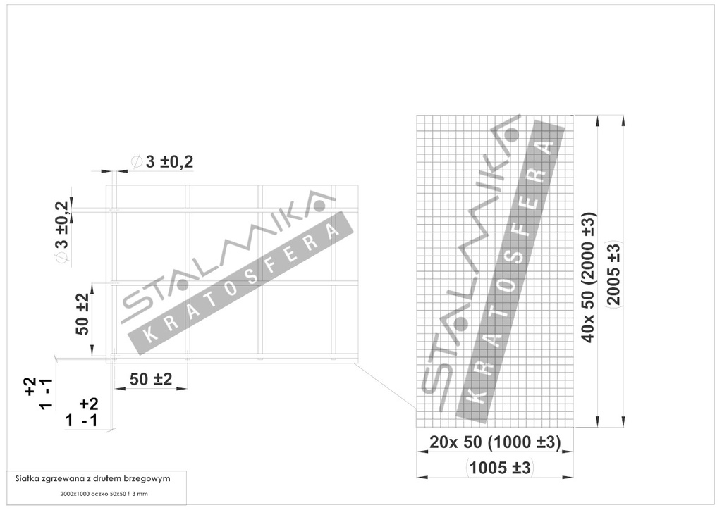 SIATKA ZGRZEWANA [z drutem brzegowym, 2000x1000, 50x50x3, stalowa]