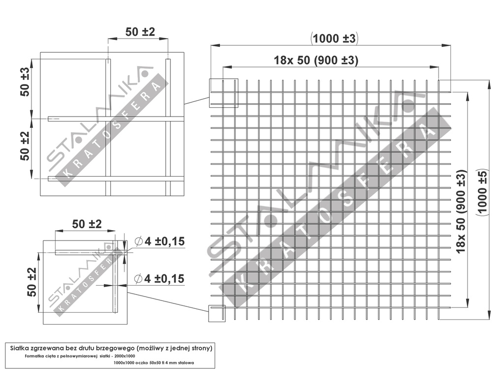 SIATKA ZGRZEWANA [bez drutu brzegowego (możliwy z jednej strony), 1000x1000, 50x50x4, Stalowa]