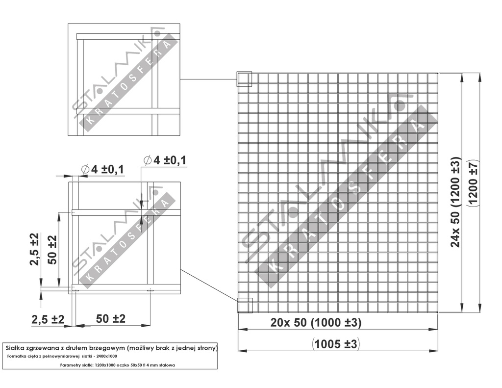 SIATKA ZGRZEWANA [z drutem brzegowym (możliwy brak z jednej strony), 1200x1000, 50x50x4, Stalowa]