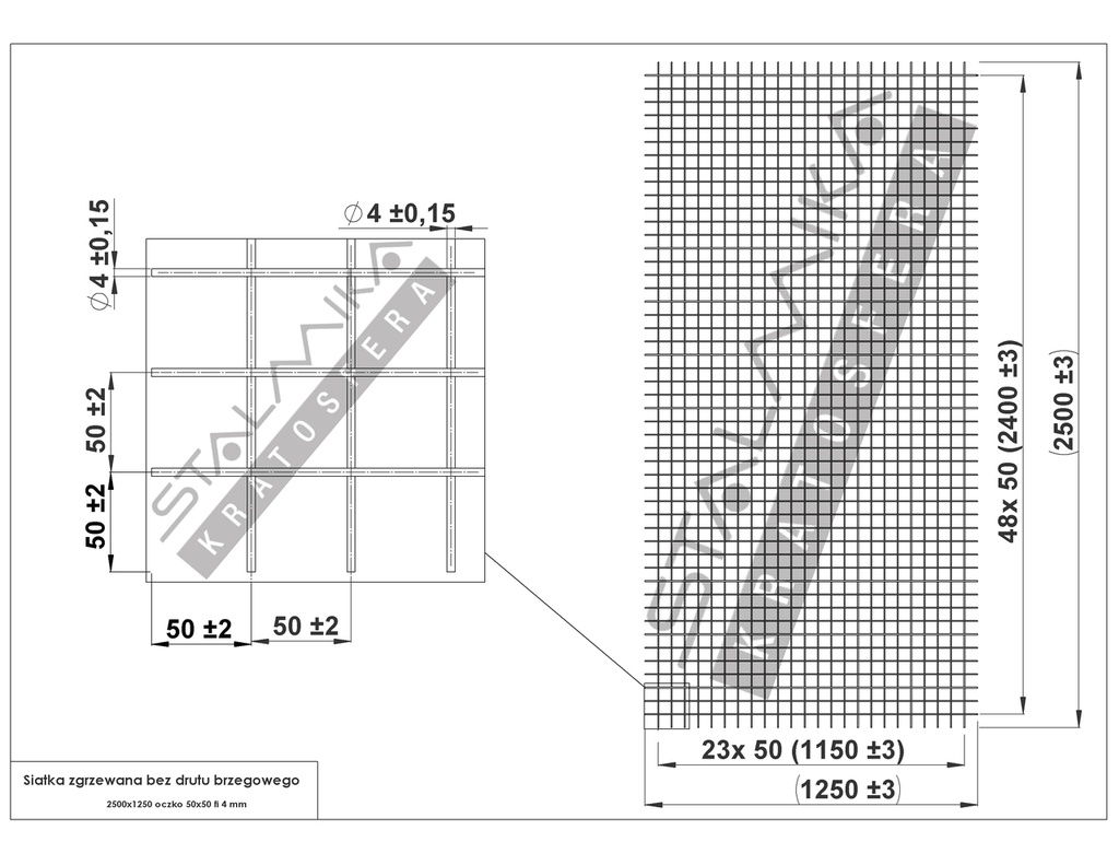 SIATKA ZGRZEWANA [bez drutu brzegowego, 2500x1250, 50x50x4, Stalowa]